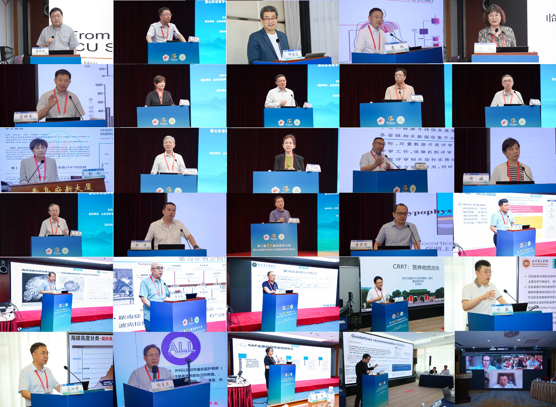 首都医科大学附属复兴医院席修明、哈尔滨医科大学附属第一医院于凯江、东南大学附属中大医院邱海波、四川大学华西医院康焰、东南大学附属中大医院杨毅、加拿大多伦多大学Haibo Zhang、法国巴黎公共医院Jean-Louis Teboul、比利时布鲁塞尔自由大学附属医院Fuhong Su、匈牙利·塞梅维什大学Zsolt Molnár、马来西亚大学Lee Zheng Yii等国内外顶尖专家,以及黄河流域九省区重症医学相关分会主任委员等知名专家160余人作专题学术讲座。大会设1个主会场、9个分会场,吸引了千余名重症医学领域的专家、学者及临床骨干注册参会。同期举办了首届“黄河杯”重症医学优秀论文汇报大赛、科普大赛和病例比赛等6项大赛,吸引全国10余个省份、近300名重症青年才俊踊跃报名,经专家评审,最终评选优秀论文27篇,优秀科普作品10部,优秀病例52个,凸显了大会在国际和全国的影响力。大会开幕式由齐鲁医院重症医学科副主任秦伟栋和青岛院区护士长张苗共同主持。