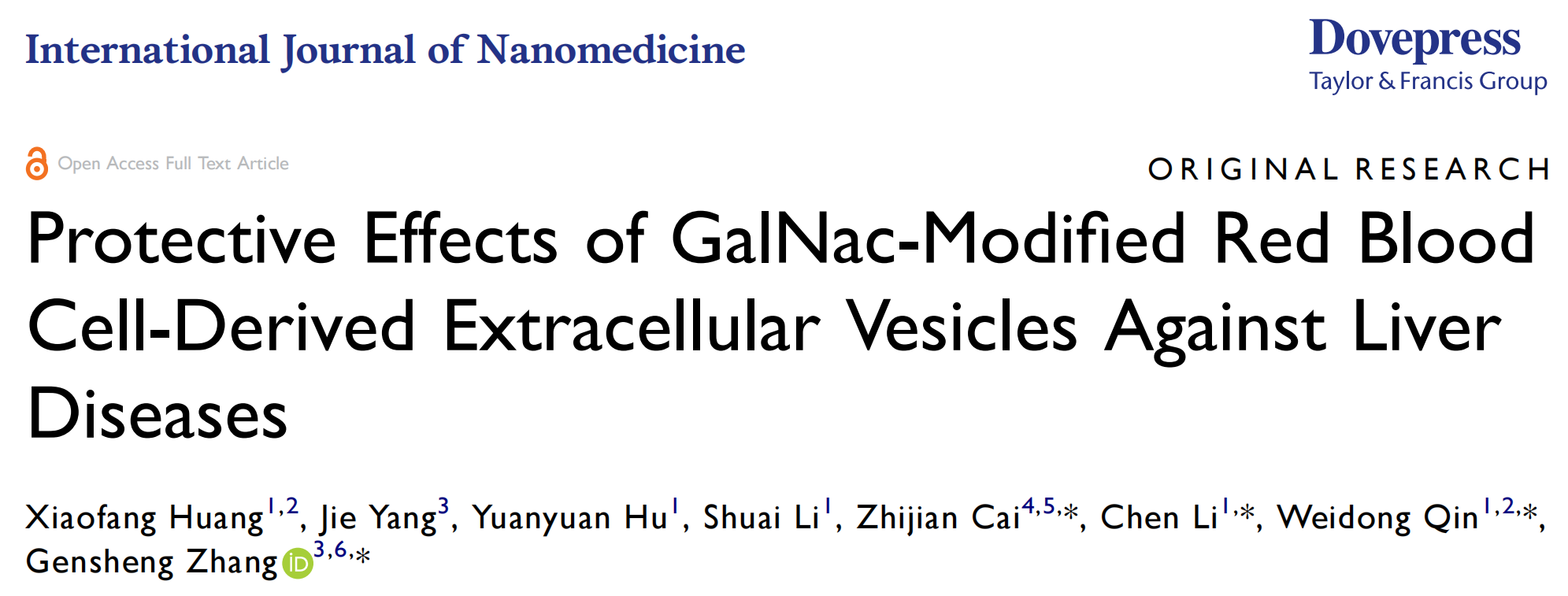 Int J Nanomedicineᅵ浙江大学张根生、蔡志坚/山东大学秦伟栋、李琛、黄小芳:发现并阐明GalNac修饰红细胞胞外囊泡治疗肝病及其机制