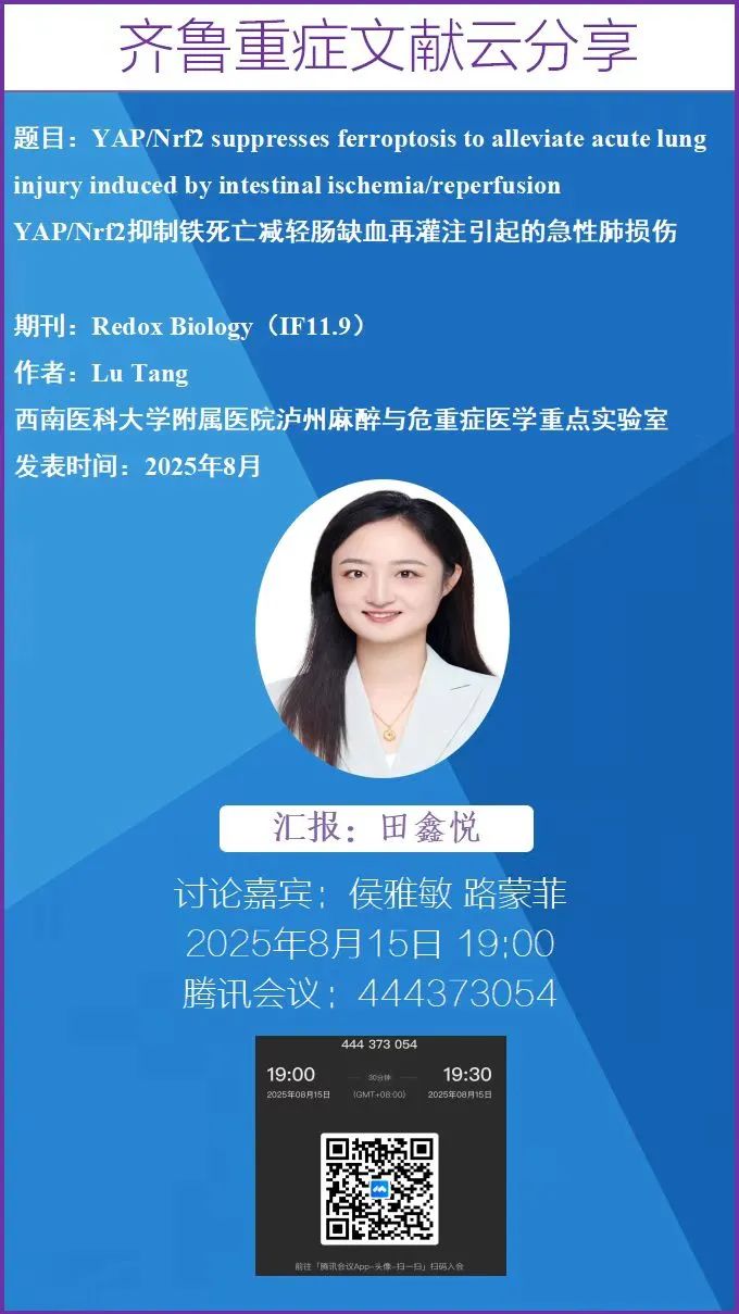 齐鲁重症文献云分享丨YAP/Nrf2抑制铁死亡减轻肠缺血再灌注引起的急性肺损伤