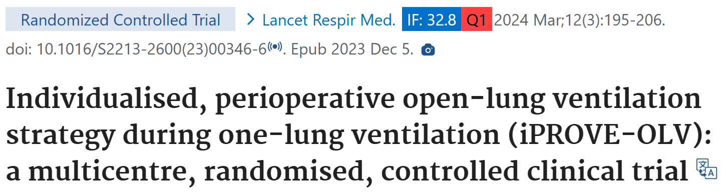 研究结果与 iPROVE-OLV 随机对照试验的结果形成鲜明对比,其显示使用驱动压力引导的 PEEP 策略,胸外科手术后严重的肺部并发症减少了 56%。这可能是由于最高的动态顺应性(或最低驱动压力)混淆了驱动压力引导的 PEEP 策略的影响。