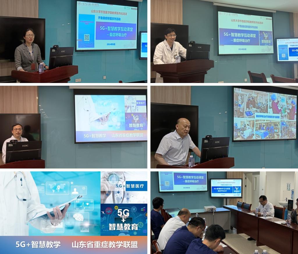 8月12日,齐鲁医学院教师发展中心、齐鲁医院教育处、重症医学科联合组织开展山东大学齐鲁医学院教师系列化培训——5G+智慧教学互动课堂。教育处处长吕明,重症医学科主任王昊,副主任李琛、郭海鹏,主任助理秦伟栋,护士长张蔚、王静及省内多所大学附属医院教学专家参会并作培训指导。活动由王昊主持。