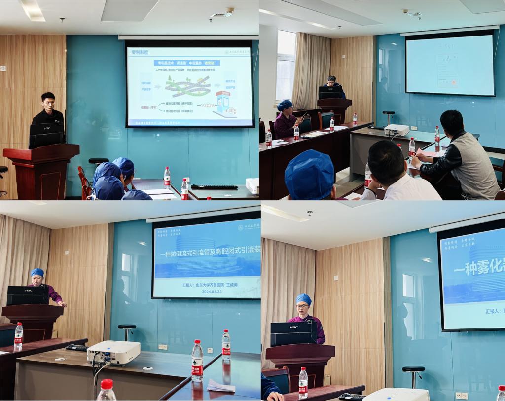 4月23日,重症医学科在妇儿楼ICU示教室举办专利申请与转化交流指导会。会议邀请科研处副处长王甲莉及相关人员出席指导工作,重症医学科主任王昊主持会议。重症医学科副主任李琛,护士长张蔚、王静、薛友儒,主任助理秦伟栋、韩辉,本科室及进修医护人员40余人参加会议。