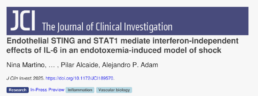 本文聚焦内毒素血症休克模型中IL - 6信号下游通路。通过对小鼠和人内皮细胞实验,发现内皮细胞中IL - 6通路抑制剂SOCS3缺失会促进I型干扰素样基因特征表达。IL - 6以非经典、不依赖干扰素方式诱导基因表达,需STAT1、cGAS、STING和IRFs等参与。抑制该通路可减轻内毒素血症严重程度,为控制IL - 6细胞内反应、调节炎症反应提供新思路。