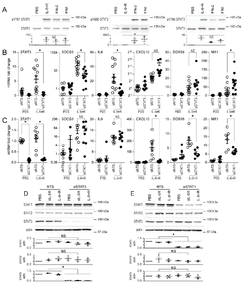 IL - 6诱导HUVEC表达ISG需STAT1,但不依赖STAT3。