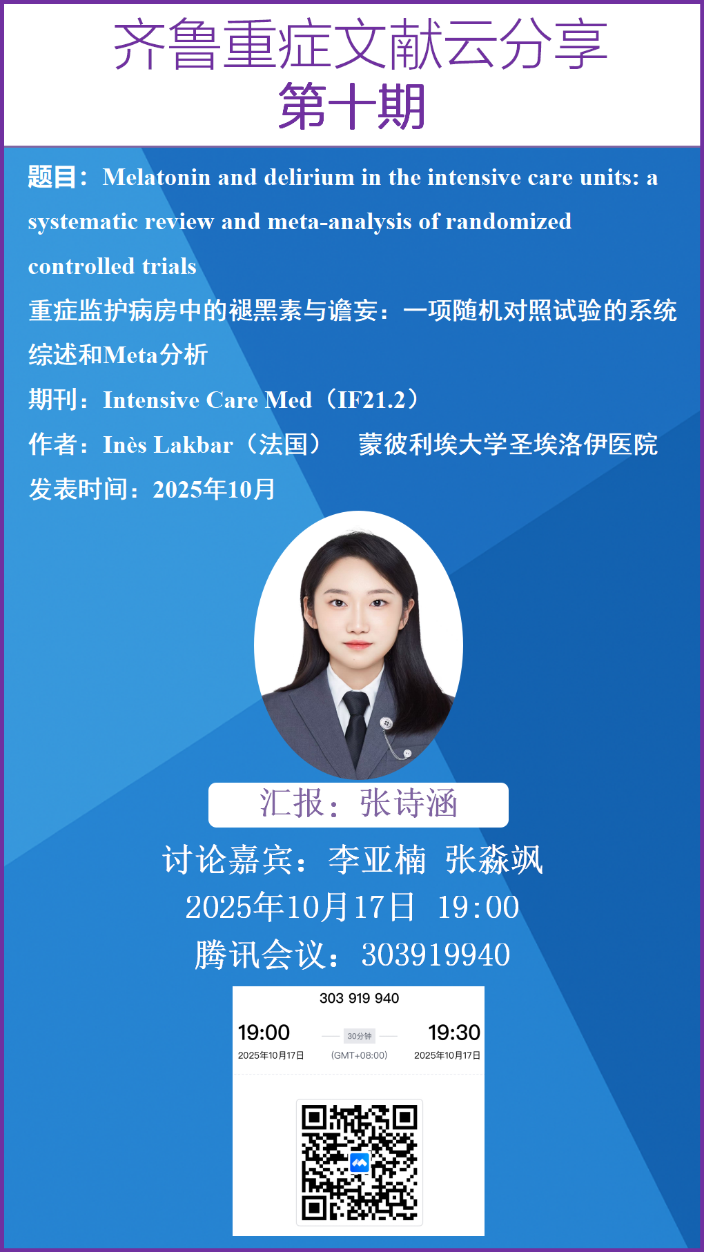 齐鲁重症文献云分享 第十期丨重症监护病房中的褪黑素与谵妄:一项随机对照试验的系统综述与Meta分析