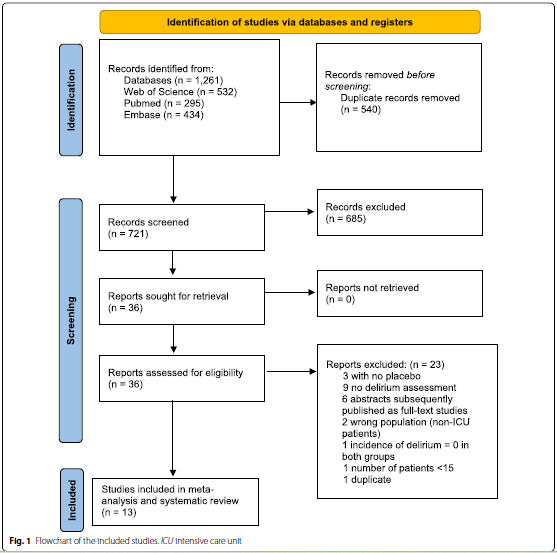 3.4 研究结局:主要研究结果是在任何给定时间点谵妄的发生率(谵妄的定义遵循研究者的定义)。次要结局包括死亡率、谵妄严重程度、不良事件、机械通气持续时间和ICU住院时间。