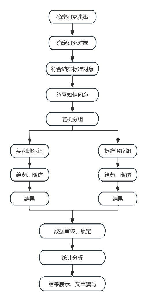 3.3 随机化与设盲:根据随机序列程序,受试者按 1:1 比例随机分配至头孢地尔组或标准抗生素治疗组。主治医师、患者及研究中心研究者均知晓治疗分配情况。