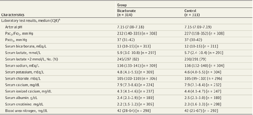 表格呈现的是本研究中最终纳入分析的627例患者的基本情况(干预组314例,对照组313例)。关键的酸碱指标(pH、碳酸氢根、乳酸以及PaCO₂)两组几乎一致。