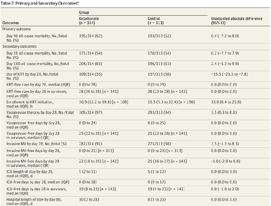 本随试验旨在评估碳酸氢钠输注是否能改善同时患有重度代谢性酸中毒和中重度AKI的危重患者的第90天全因死亡率。
